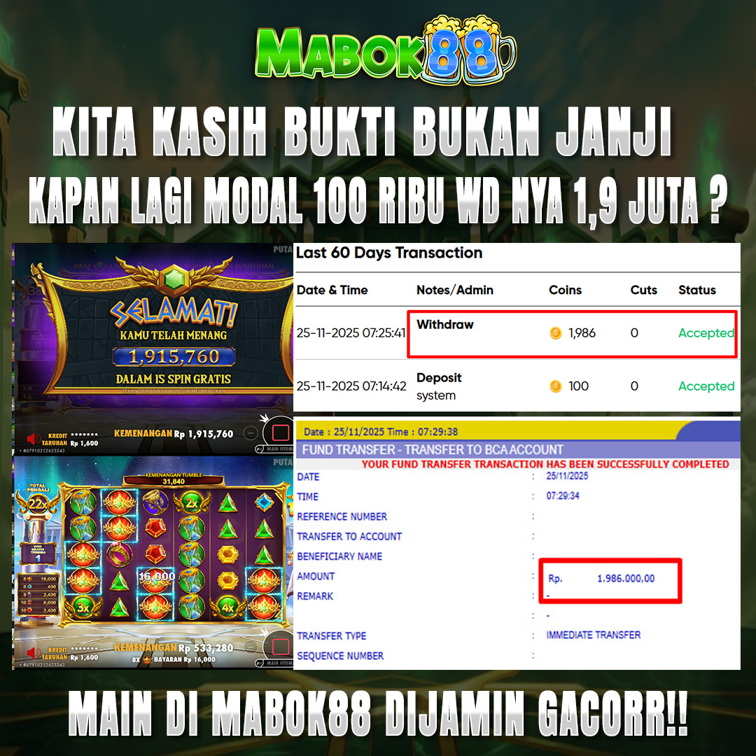 Cek sendiri SURGAWIN288 tempat game jackpot dalam waktu singkat cuma di sini depo 100k bisa withdraw 1,9+ juta Sudah di kasih bukti bukan janji yakin ga main?Rugi Dong!